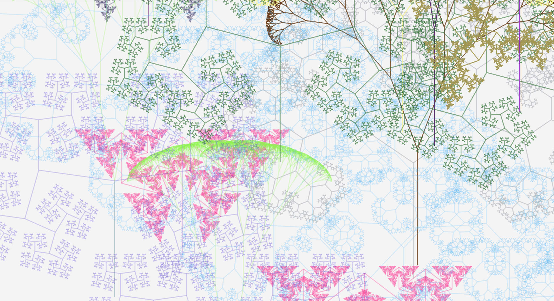 The mouse is hidden when it's on the screen so moving the mouse around will appear to randomly generate the trees on the canvas. The tree's have an alpha value that is also based on mouse x, y; the further down and to the right you get, the more opaque the trees become.